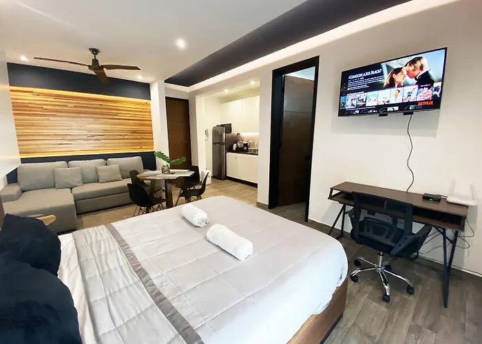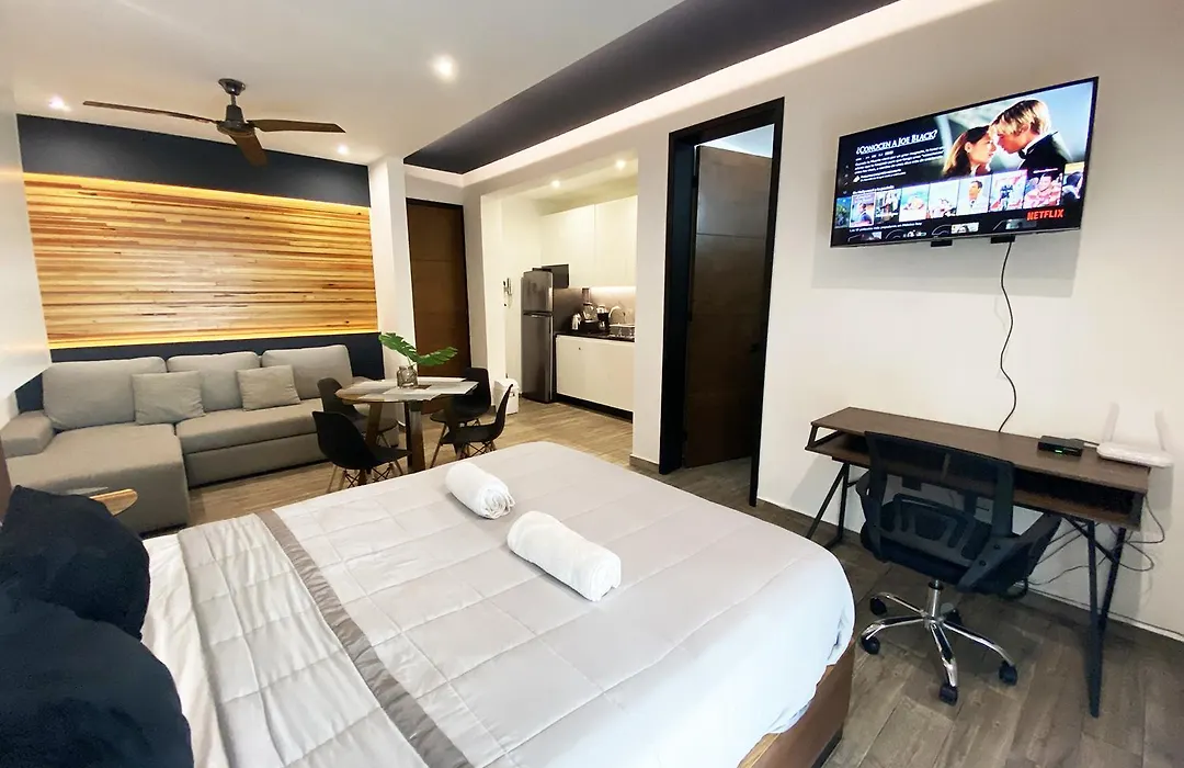 Offering a rooftop swimming pool, the 35 ft² Workspace-Reliable Wifi-Ac Close To Everything Playa del Carmen apartment is situated 20 minutes by foot from Cenote Carwash Dive Shop. Offering a terrace and views of the street, this 1-bedroom apartment is located in the Centro district.
